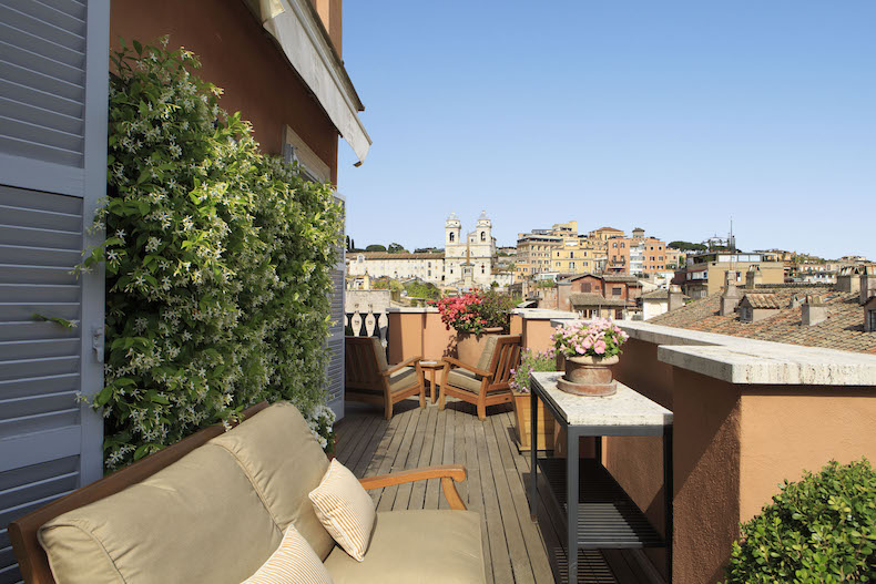 Гости входят в Portrait Roma с улицы Виа Бокка ди Леоне со своим ключом, открывая массивные деревянные двери, как истинные жители Рима. Стены вдоль лестницы украшены фотографиями звезд мирового кино и моды в нарядах Феррагамо, а когда вы дойдете до своего номера, удивитесь тишине, а потом вдохновитесь замечательными видами с вашей собственной террасы: и на виллу Медичи на холме Пинчи, и на церковь Сантиссима-Тринита-деи-Монти (Святой Троицы на горах).