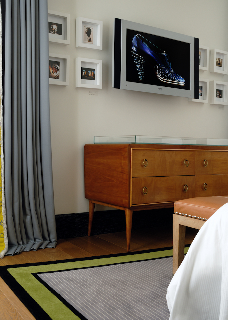 Фотографии, макеты, эскизы во всех 14 студиях и люксах Portrait Roma рассказывают о творческом пути легендарного дизайнера. За оформление номеров отвечал известный флорентийский дизайнер Микеле Бонан, постоянно сотрудничающий с семьей Феррагамо и Lungarno Collection. В интерьере он мастерски сочетает мрамор и дерево совершенно нетрадиционными способами, а еще тут можно увидеть столы со встроенными лампами, обтянутые шкурами кабана, обивку, вдохновленную портновским искусством, а пудрово-розовая подкладка штор напоминает шелковые шарфы с узнаваемым логотипом Ferragamo. Как и во всех отелях Lungarno Collection, здесь ощущается утонченность и сдержанный шик с яркими узнаваемыми деталями и обилием искусства.