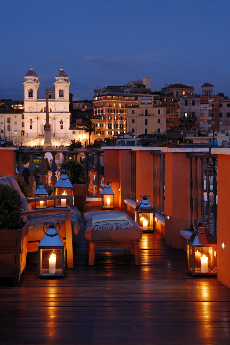 На последнем этаже отеля также есть терраса, доступ туда открыт только для гостей Portrait Roma – это настоящее инсайдерское место в самом сердце Рима. Здесь и камин, потрескивающий за стеклянной стеной, и уютная мебель, и потрясающие виды, которые ни на минуту не дают забыть, что вы находитесь на вершине Вечного города. Терраса Portrait Roma – одна из самых высоких точек на Виа Кондотти, здесь приятно и завтракать, и наслаждаться закатным солнцем, заливающим римский горизонт.