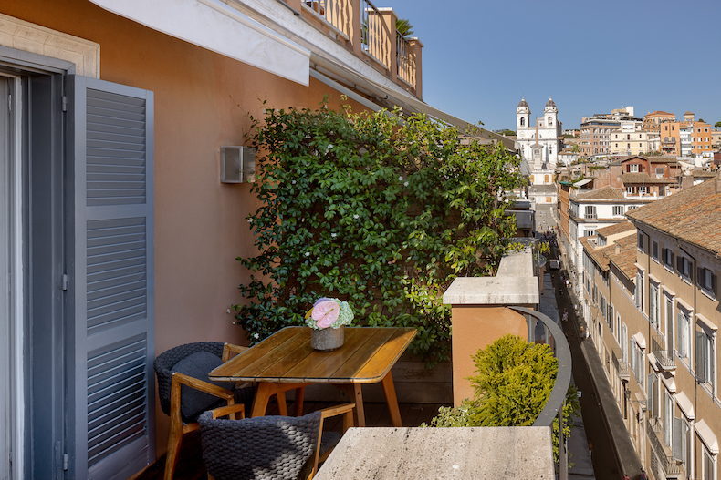 Гости входят в Portrait Roma с улицы Виа Бокка ди Леоне со своим ключом, открывая массивные деревянные двери, как истинные жители Рима. Стены вдоль лестницы украшены фотографиями звезд мирового кино и моды в нарядах Феррагамо, а когда вы дойдете до своего номера, удивитесь тишине, а потом вдохновитесь замечательными видами с вашей собственной террасы: и на виллу Медичи на холме Пинчи, и на церковь Сантиссима-Тринита-деи-Монти (Святой Троицы на горах).
