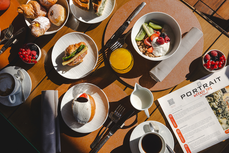 Во всех номерах гости найдут мобильный телефон – к нему можно подключить свою gmail почту и Google maps и отправиться с ним на встречу с Римом, не беспокоясь о связи и поисках геолокации. А за завтраком можно почитать газету Portrait Weekly Tips, где собраны самые знаковые выставки и события города.